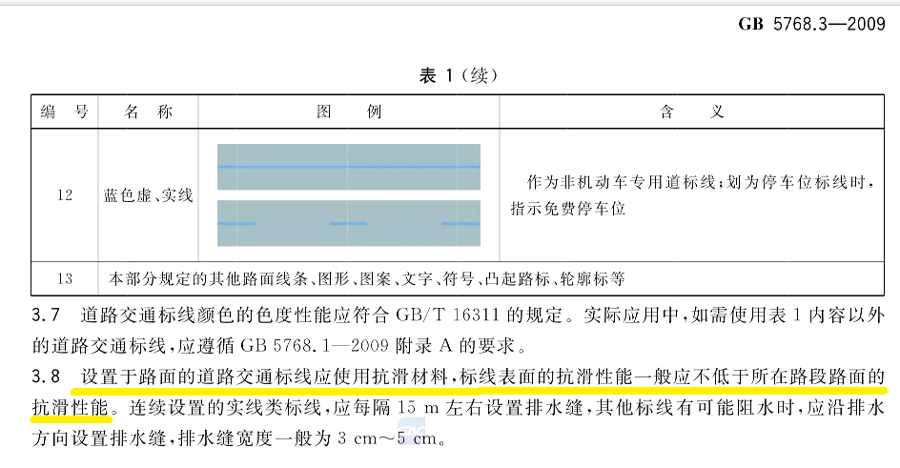 因不专业,一般市民对此习以为常甚至觉得横道线雨天湿滑属于理所当然的情况。殊不知,道路标线有国家标准保驾护航。强制性国家标准《道路交通标志和标线 第3部分:道路交通标线》(GB 5768.3-2009)就规定,“设置于路面的道路交通标线应使用抗滑材料,标线表面的抗滑性能一般应不低于所在路段路面的抗滑性能”。
