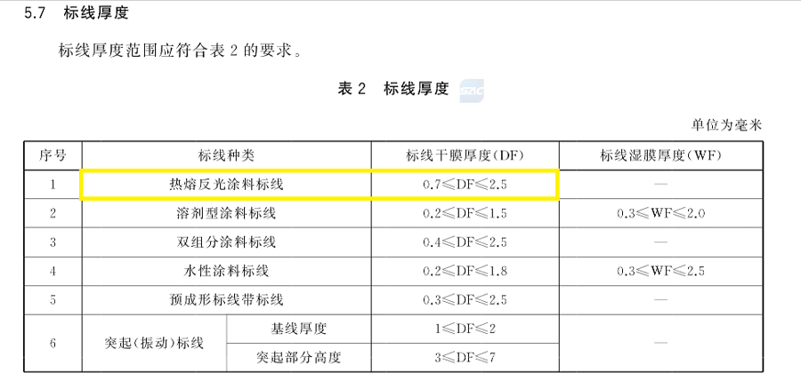 推荐性国家标准《道路交通标线质量要求和检测方法》(GB/T 16311-2024)则明确,热熔标线厚度在0.7毫米至2.5毫米之间。