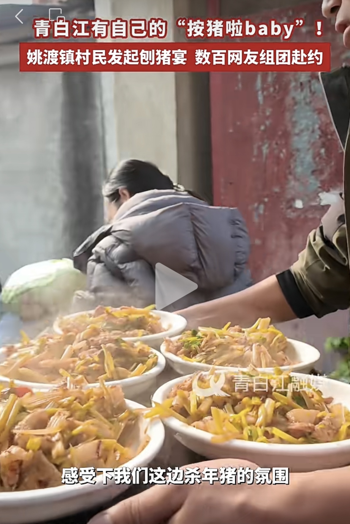 “看到合川呆呆的刨猪汤视频火了,我们家也正好要杀年猪,就在抖音上随手发了个邀约。”